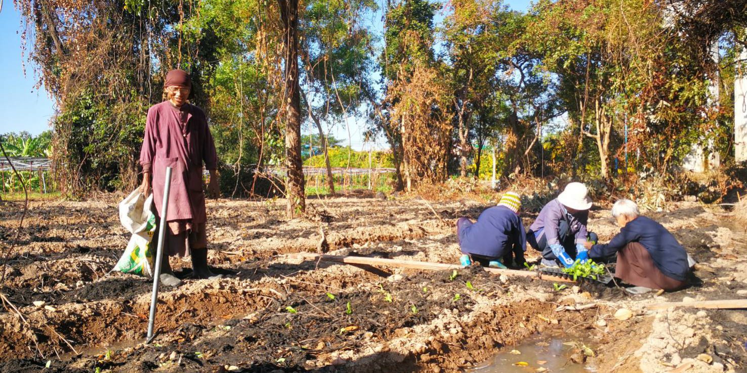 เป็นพื้นที่เคยเป็นป่าไม้ยืนต้น และจำพวกตระกูลไม้เถา มีปริมาณมากมาย ใช้รถไถ แบ่งเป็นพื้นที่แปลงกสิกรรมไร้สารพิษ เป็นพื้นที่อยู่ติดกับฐานงานโรงหล่อ คุณแสงศิลป์เดือนหงาย ในวันนี้นำโดยส.ฟ้าไท สมชาติโก และท่านสิกขมาตุแสงฝน อโศกตระกูล เป็นที่ปรึกษา กิจกรรมวันนี้เป็นเรื่องของการโฮมแฮงวันบวร ซึ่งขณะนี้นักเรียนสัมมาสิกขาราชธานีอโศก ถูกจำกัดพื้นที่ หรือกักตัว งดการเรียนการสอน เนื่องจากมีเคสติดเชื้อโควิดเข้ามาในหมู่บ้านเราและอยู่ในภาวะสุ่มเสี่ยงต่อการติดเชื้อไวรัสโควิดนี้ จำเป็นต้องงดการร่วมงานกับผู้ใหญ่ในขณะนี้สักระยะก่อน ผู้ใหญ่จำนวน 12 คนมาร่วมกันปลูก ซึ่งเป็นกลุ่มสีส้มหรือคุ้มตะวัน แบ่งเป็นงานขนดินเข้าแปลง และปลูกผักสลัดใบตรง มะเขือเทศ คะน้า จำนวนหนึ่งก่อน ท่านสมณะแนะนำว่าบริเวณคันคูชิดถนนโรงหล่อจะปลูกมะพร้าวแกงเป็นทิวแถว อาจเพิ่มเติมมะนาวบ้าง ส.ฟ้าไท ท่านวางแผนได้ในสวนแห่งนี้ คงไม่ได้รับการดูแลฐานในพื้นที่ ถ้ามีคนช่วยดูแลก็จะยินดีเป็นที่ปรึกษา บริเวณคันคูที่ขุดบ่อพักแหนแดงก็จะปลูกพืชจำพวกตระกูลไม้ดอก ที่อายุยืนยาว เชิญผู้สนใจหาพันธ์ุมาปลูกได้เลย หลังทำงานเสร็จในรอบเช้า มีสรุปงานพูดคุยกันรับพรก่อนแยกย้ายกันไปทานอาหารเช้า งานนี้ทุกคนได้ทำงานด้วยความยินดี เต็มใจ ด้วยความสุขสำราญ เบิกบานใจ