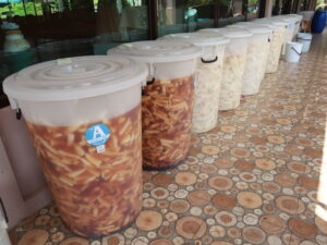 โดยทีมนักศึกษาปวช มีคุณสุขแสงบุญหรือป้าแมว เป็นคุรุร่วม สร้างดินสร้างอาหาร เมื่อ30 ธันวาคม 2564 และเมื่อวันที่13 กุมภาพันธ์ 2565 ร่วม 2 เดือน ก็เก็บเกี่ยวผลผลิตได้ มากถึง 2720 กก. ได้นำมาแปรรูปเป็นไชโป็หวาน